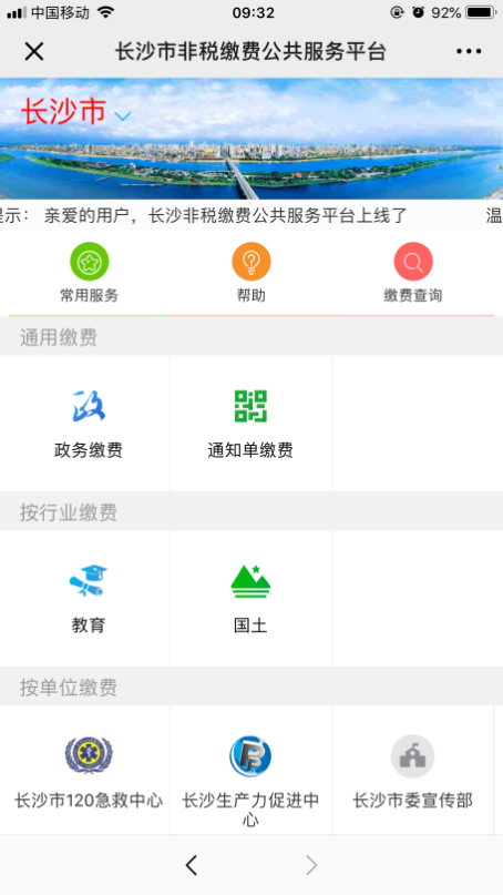 根据长沙市政府机构改革方案及职能职责调整安排,长沙市非税缴费公众服务平台微信公众号将自2019年5月9日起迁移至长沙财政微信公众号平台,由此给您带来不便,敬请谅解!