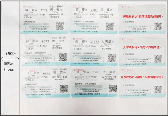 六、火车票、汽车票以及飞机票的粘贴,应按照每个人的行程,从出发地依时间、地点顺序粘贴至回到长沙形成闭环。