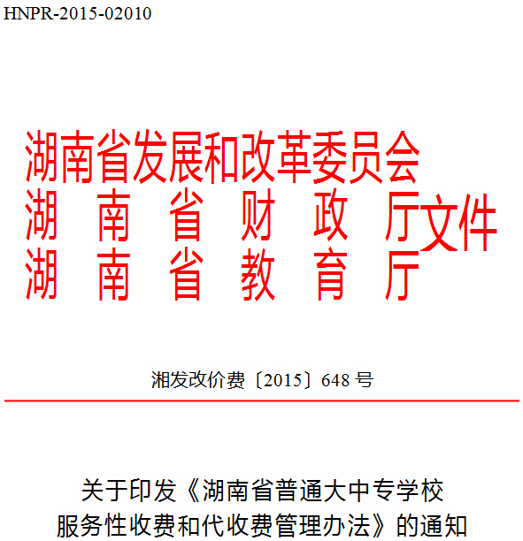 (2015年)关于印发《湖南省普通大中专学校服务性收费和代收费管理办法》的通知