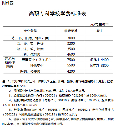 四、高职专科学校学费标准表