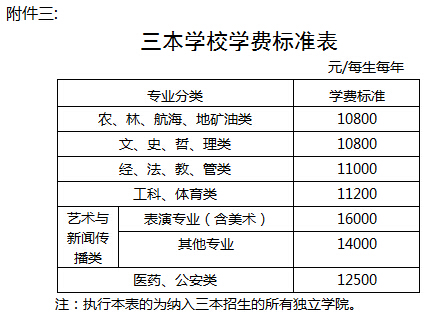 三、三本学校学费标准表