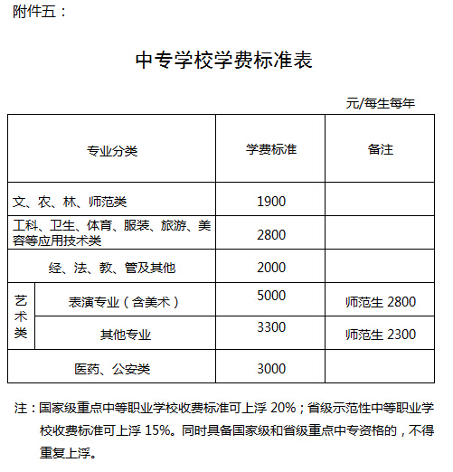 五、中专学校学费标准表