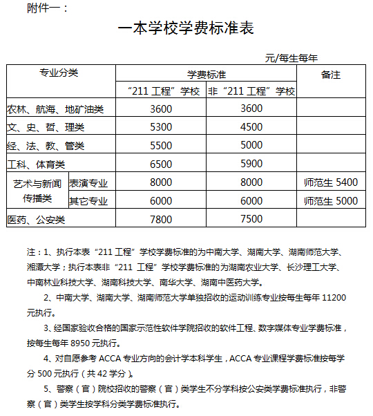附件:一、一本学校学费标准表
